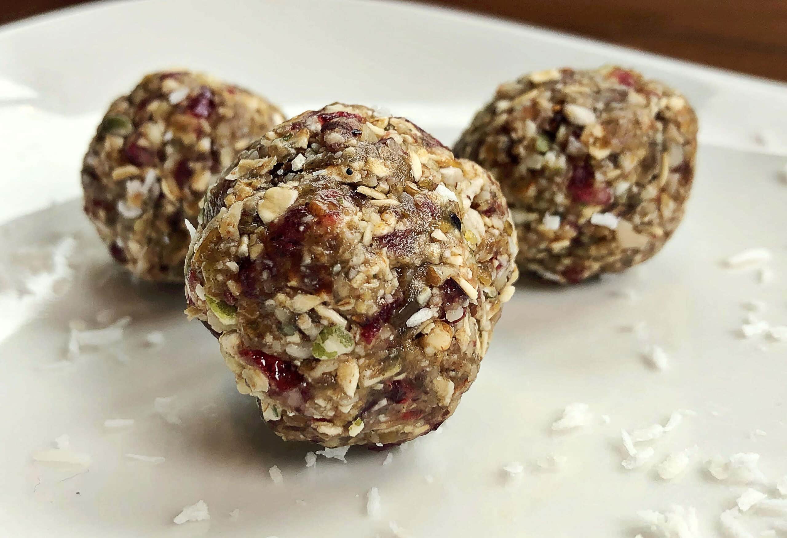 - If the mixture does not stick together well then add 2 T. of water, 1-2 T. of additional honey OR an extra ¼ cup of dates to allow the hike bites to come together.
