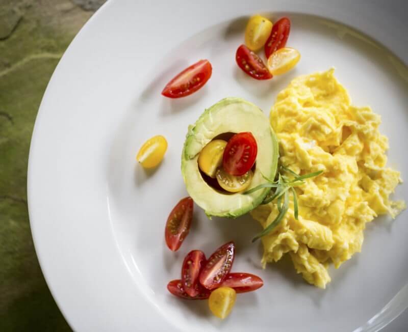 SCRAMBLED EGGS WITH AVOCADO AND TOMATOES