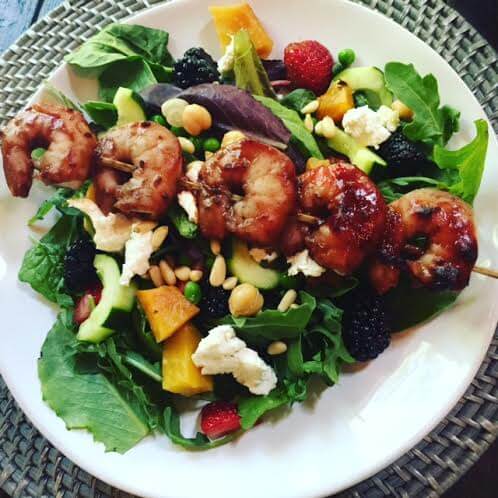 A colorful, nutrient-dense way to enjoy BBQ grilled shrimp.